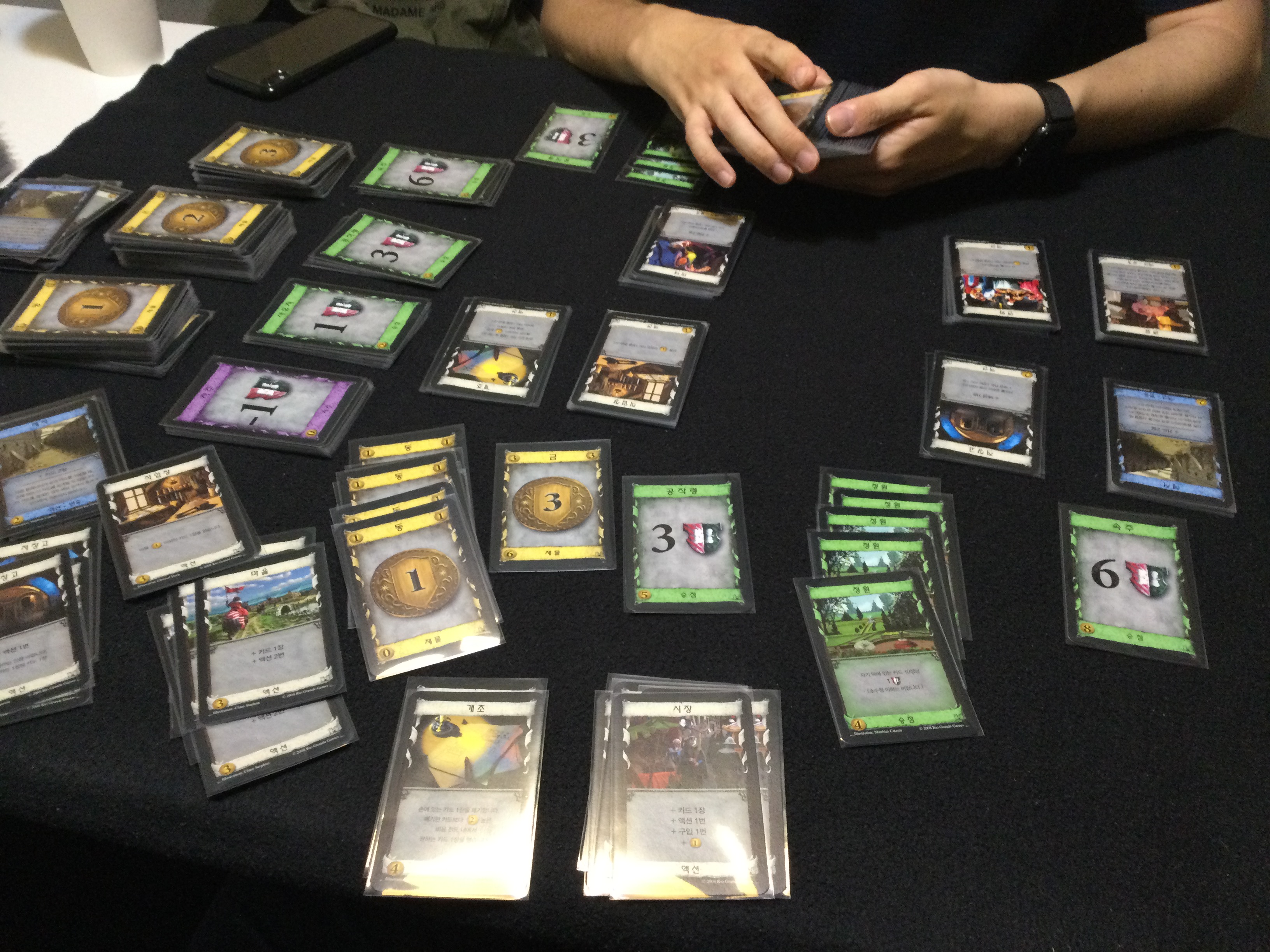 도미니언의 첫 번째 게임 세트의 10종을 꺼내 놨는데, 카드 텍스트를 읽으시더라고요?